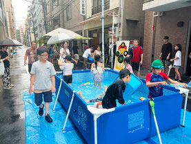 たのしい夏の縁日「ザ・東三筋」が8月10日に開催されました。 珍しく大雨でしたが多数の方々にご参加いただき、プールや食事をお楽しみいただきました。 当日の写真を掲載いたしますので、ご覧ください。 文末ではございますが、皆様から多数のご寄附やご協力を賜りましたことを感謝いたします。