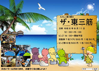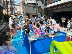 たのしい夏の縁日「ザ・東三筋」が8月11日に開催されました。 猛暑でしたが多数の方々にご参加いただき、プールや食事をお楽しみいただきました。 当日の写真を掲載いたしますので、ご覧ください。文末ではございますが、皆様から多数のご寄附やご協力を賜りましたことを感謝いたします。